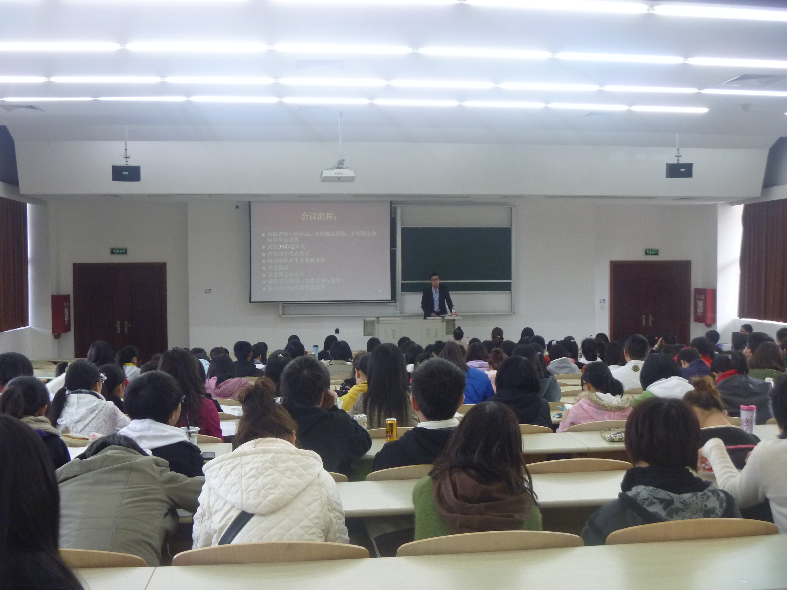 (图片说明:何刚学长为同学们做事业生涯导航讲座)