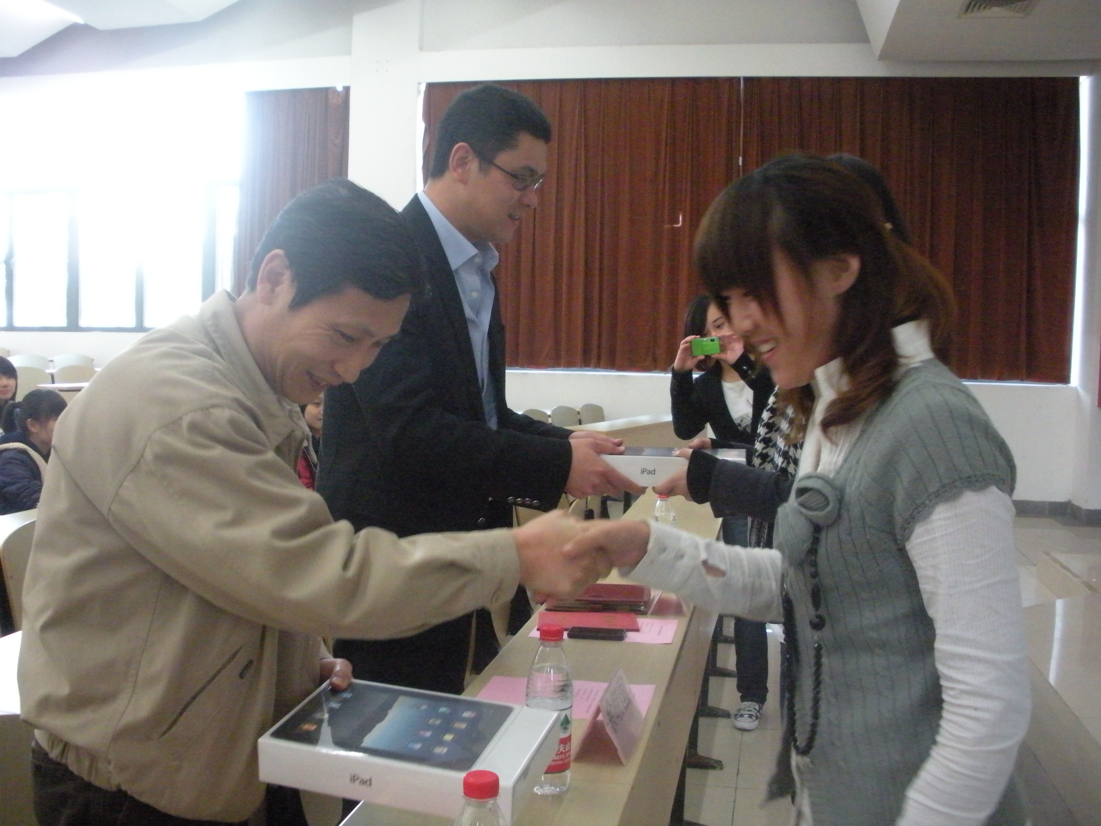本次共有6位同学获得了ipad学习进步奖,她们是:隋雨含、张永娇、杜筱薇、许婷婷、徐杨婷、李丹红。(摄影:顾姝悦、孙雅平)