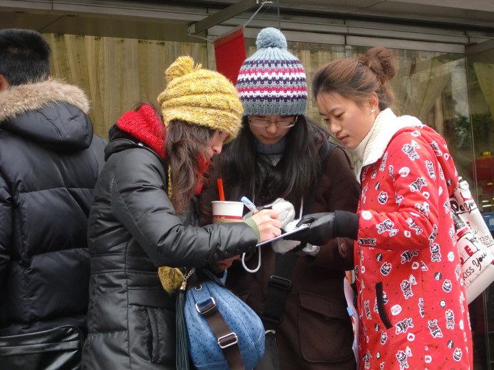 1月21日下午,来自外国语学院学代会的同学们在福州路上海书城门口开展了以“环保创意大调查”为主题的问卷调查活动。本次活动旨在加深同学们的环保观念,同时宣传化废为宝、利用垃圾的环保生活方式。活动期间同学们还展示了用废旧材料自制的小礼物,包括用薯片盒做的储蓄罐、用冷饮棒做的小木屋等,既美观又极富创意。虽然正值寒冬,但同学们克服了天气、交通等因素,以饱满的热情投身到活动中。