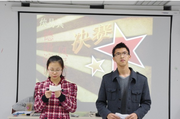 3月31日晚6点半,由乐德社主办的以“爱与感恩”为主题的德语演讲风采大赛决赛在E401隆重举行。德语系的卢加康老师,以及来自大三的优秀学生代表朱涛、赵建品担任了此次比赛的评委,德语系何剑老师作为嘉宾观看了比赛。在初赛中脱颖而出的10位选手参与了最终的角逐。