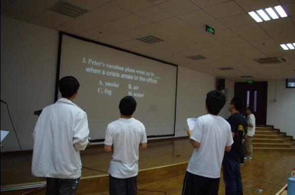 5月26日晚6点半,作为文化艺术节系列活动之一,由外国语学院创新基地举办的“大学英语词汇大赛”决赛在大活117展开。