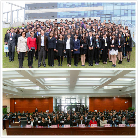 图片说明:第六届校际模拟联合国大会开幕式现场及全体合影