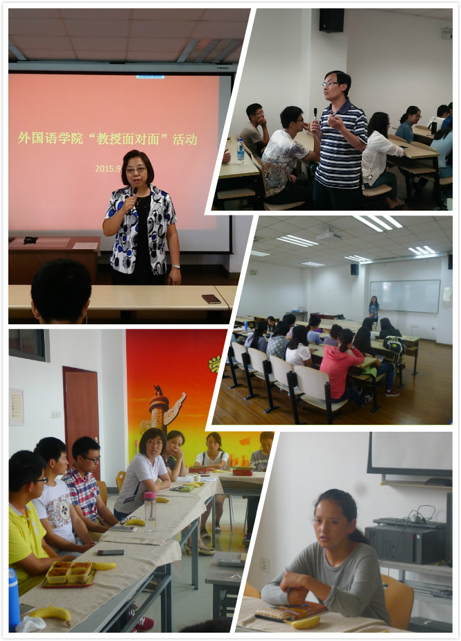 9月18日,学院举办“教授面对面”活动,副院长颜静兰教授、王建国教授与160余名新生共话外语学习的技巧与方法。颜静兰强调,外语学习需要更多的实践,建议新生在抓好学习主业的前提下,多参加各类外语竞赛,通过比赛来提高自己的外语水平;王建国建议同学们不能仅停留在课堂上,还要在课后通过大量的阅读外文书籍,练习听力与口语,广泛涉猎,了解西方的文化,这样才能更好地掌握语言。