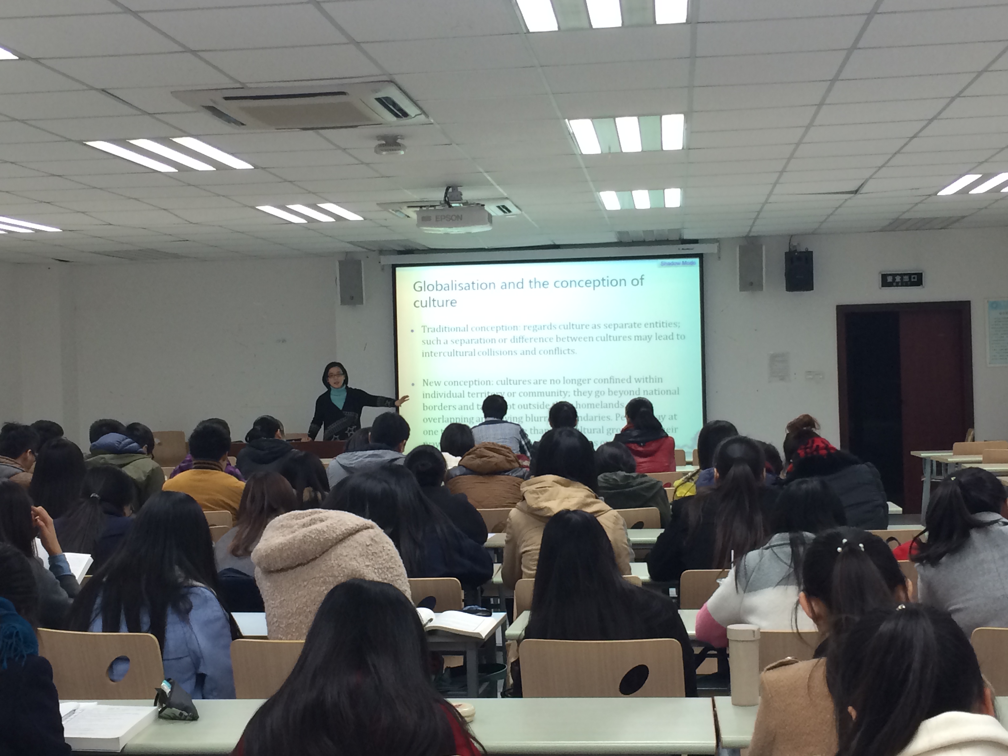 11月26日晚,外国语学院教师金戌捷在奉贤校区外语楼401室做了题为“后结构主义及全球化影响下的文化学发展和研究趋势”的讲座。