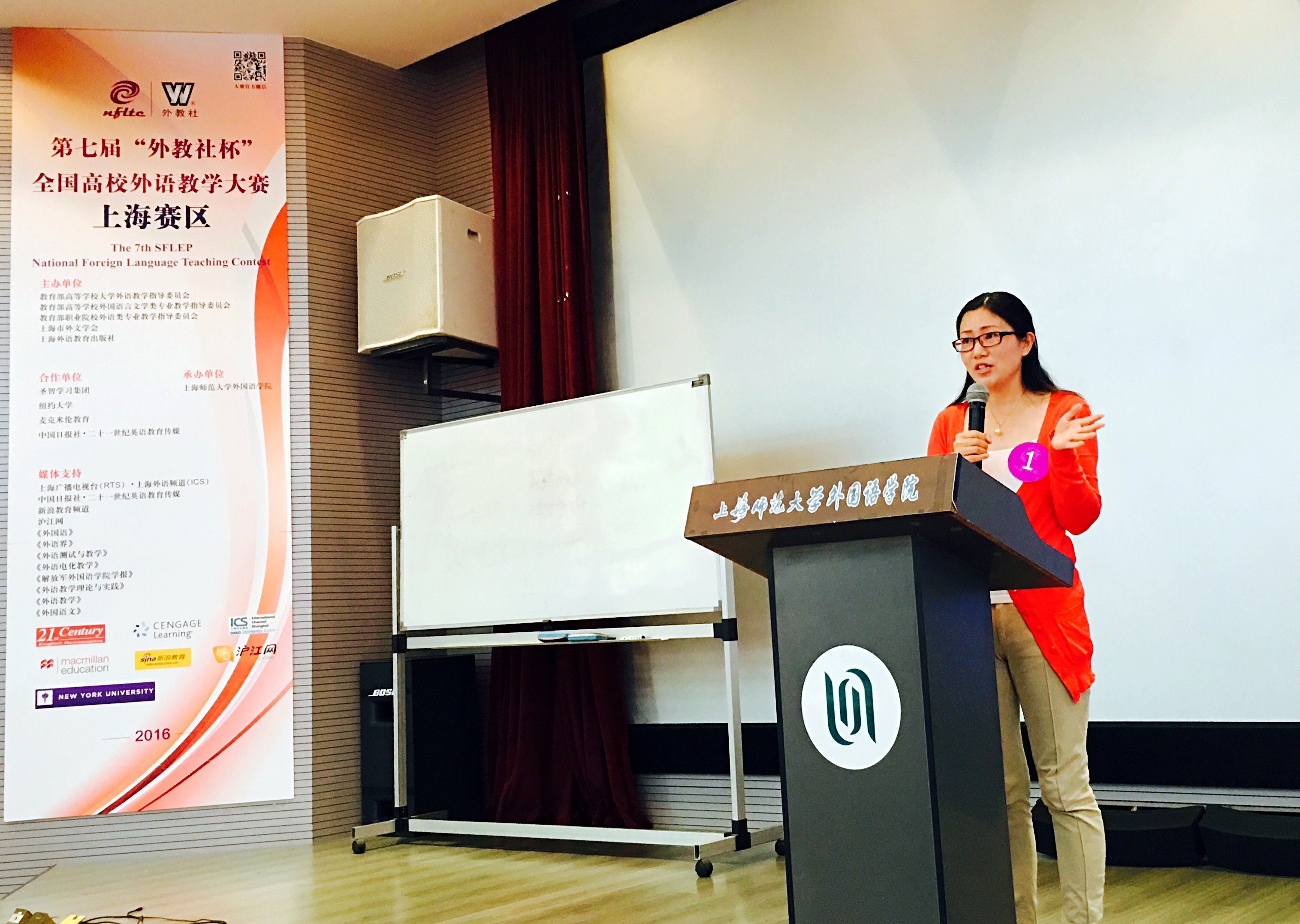 5月21日至22日,由教育部高等学校大学外语教学指导委员会、教育部高等学校外国语言文学类专业教学指导委员会、上海外语教育出版社等单位主办的,“第七届外教社杯全国高校外语教学大赛”上海赛区比赛,在上海师范大学外国语学院举行。我校外国语学院教师楼燕斐荣获大学英语综合组比赛一等奖。