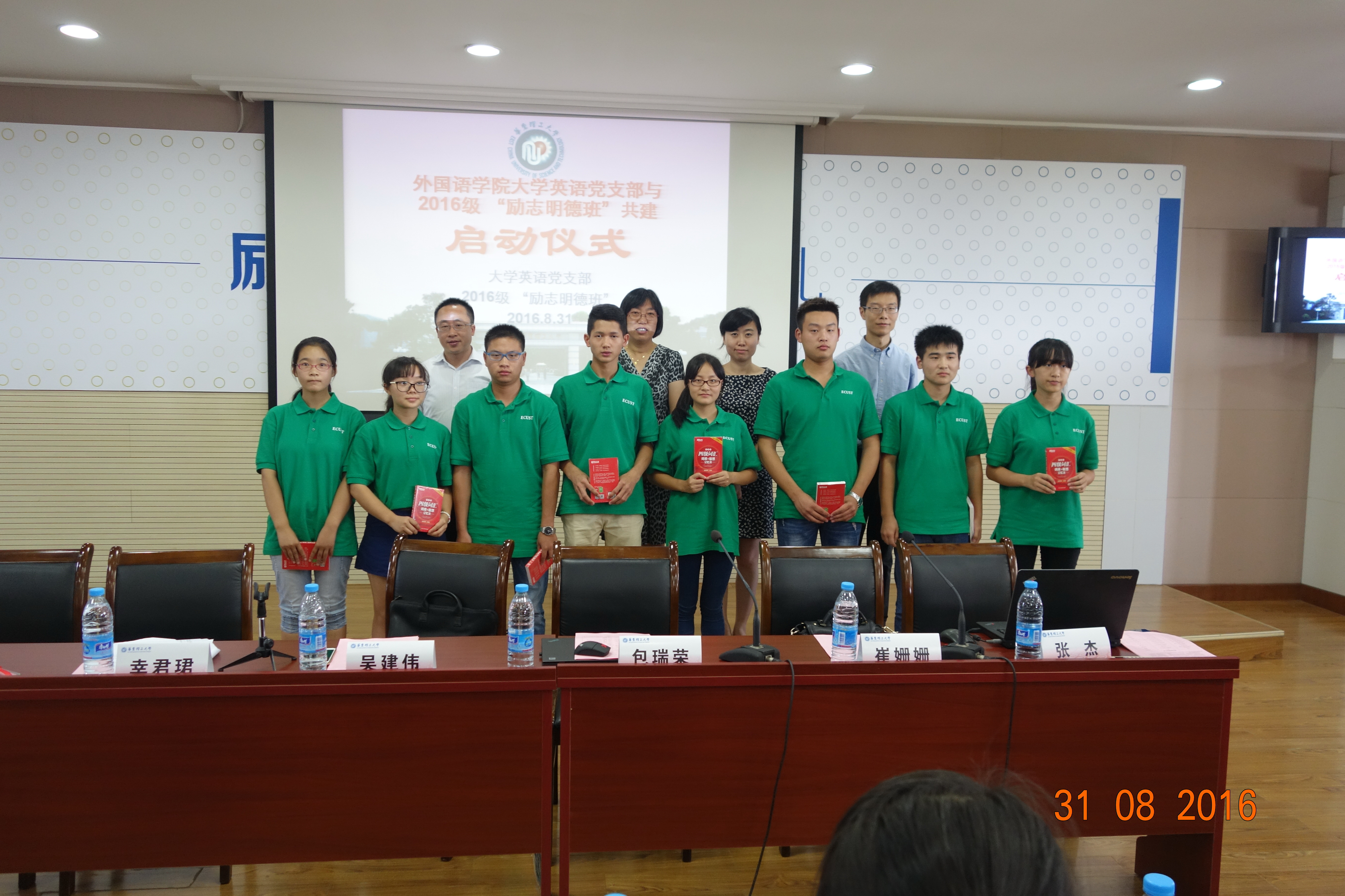 图片说明:大学英语党支部与2016级“励志明德班“共建活动启动仪式