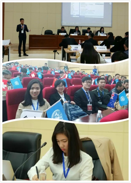 此次模联大会主题下设5个英文委员会以及1个中文委员会。来自全国各地的学生代表变身世界各个国家的驻联合国大使,立足“本国”的立场、政策、国情,在大会上动议、辩论、自由磋商,并在多边框架下共同协商,形成决议草案,努力解决实事焦点以及国际性问题。在为期3天的会议中,代表们经历了正式辩论、非正式辩论、结盟拟定工作文件、最终形成决议草案并投票表决。我校参会代表表现优异,其中鲍延作为德国代表参加第一委员会讨论2030可持续发展问题,周叶子代表英国参加了第六委员会讨论打击网络犯罪的国际合作问题,来自机械动力工程学院机设153班的国防生许嘉伟代表德国参加了第五委员会讨论打击国际毒品犯罪的问题。