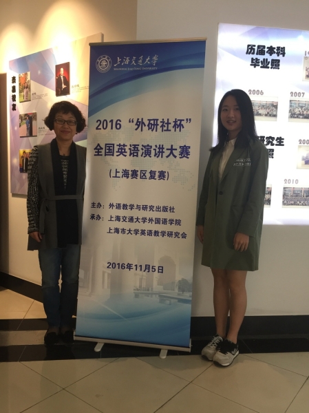 11月5日,2016年“外研社杯”演讲英语演讲大赛上海赛区复赛于上海交通大学闵行校区举行。我校代表选手商学院会计151班的李溪岩同学荣获一等奖,指导教师为外国语学院英语系黄岚和杨慧敏。