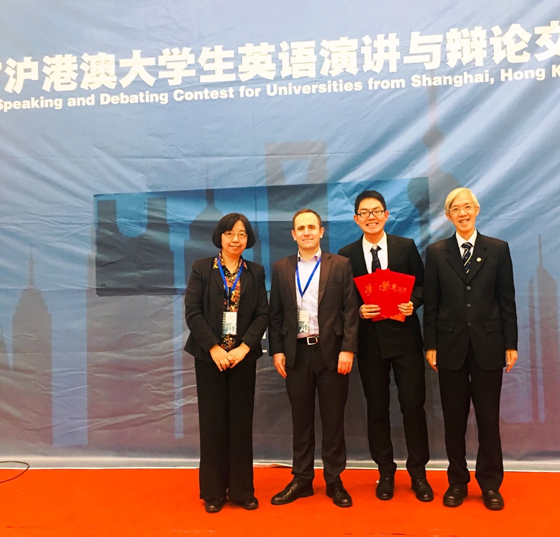 10月15日,2017年沪港澳大学生英语演讲与辩论赛在复旦大学光华楼结束。我校外国语学院日语152班的蔡弋鸣同学荣获英语演讲比赛亚军和辩论赛的最佳辩手奖。