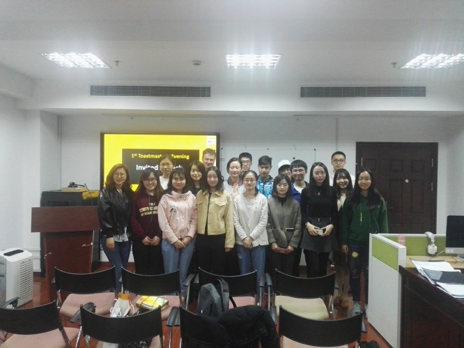 3月29日晚,我院英语专业15级学生、第15届“21世纪·华澳杯全国大学生中澳友好英语大赛”冠军获得者谢飞同学应复旦语言学习中心万江波老师邀请,赴该校参加“演说家之夜”(Toastmaster’s Evening),用英语分享了自己在演讲方面的心得体会。