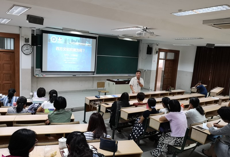 9月28日下午,外国语学院青教联“教授有约”系列学术讲座在徐汇校区四教112室开讲。本次讲座由德语国家研究中心主任、德语系系主任王涌教授主讲,主题为“西方文化究竟为何”。学校近30名教师参加了讲座。