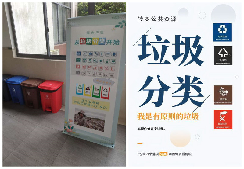 奉贤校区的本科生近期也开展了关于垃圾分类知识的宣传活动。学生们结合专业特色,自发制作海报等宣传物品,以生动形象的分类说明辅助同学们正确做好垃圾分类工作。