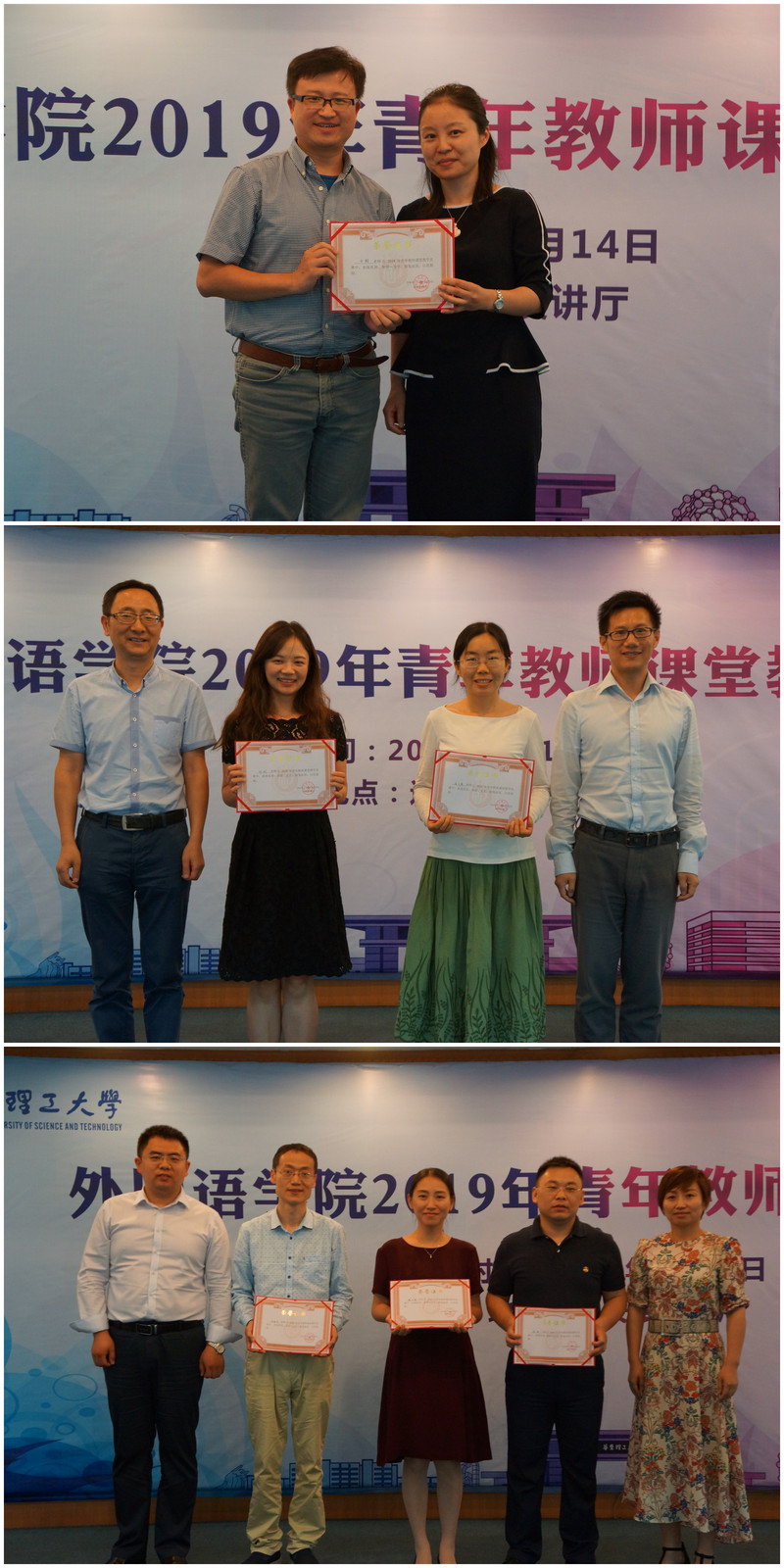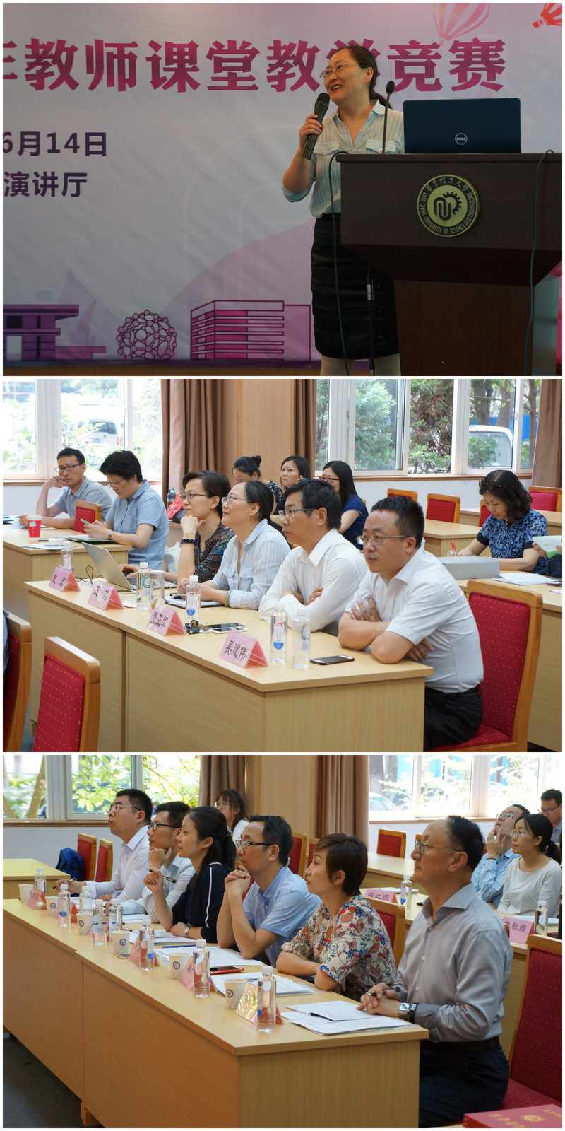 6月14日下午,外国语学院2019年青年教师课堂教学竞赛在徐汇校区逸夫楼演讲厅举行,该院全体教师到场观摩。同济大学外国语学院副院长董琇、上海师范大学外国语学院副院长胡俊杰、上海理工大学外国语学院副院长陈琦、上海交通大学外国语学院教授朱一凡、我校化学学院副教授沙风应邀担任评委。本科教学督导组督导王晓光应邀出席并观摩比赛。