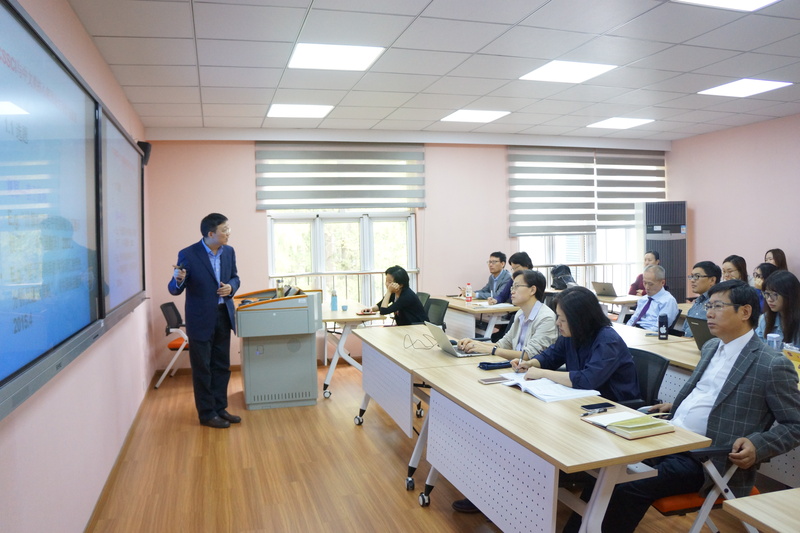 当天上午,许明武为外国语学院师生作了题为“外语学科学术论文写作路径”的讲座。他分享了在专门用途英语教学和口笔译领域丰富的实践经验和研究成果,并就学术论文的选题和论证,用幽默睿智的语言与学院师生进行了交流。
