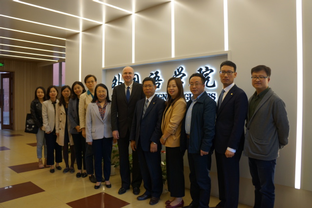 11月8日下午,英国哈德斯菲尔德大学科技创新孔子学院英方院长、哈德斯菲尔德大学音乐、人文与传媒学院主管国际事务副院长Rupert Till教授、哈德斯菲尔德大学中国代表处执行主任李雪女士到访外国语学院,与我院和国际教育学院部分领导和骨干教师举行了亲切会谈,并观摩了国际教育学院为留学生开设的“中国文化概况”课程和“科技汉语”课程。