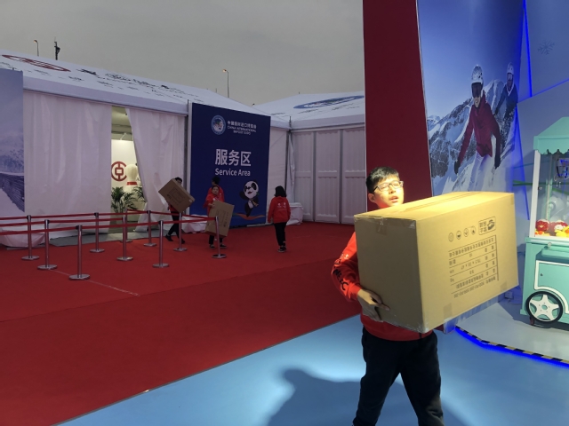 外语学院志愿者主要负责室外冰雪展区、地区组和装备组三个部分的相关工作。室外冰雪展区是今年进博会新设立的展区,也是为了迎接2022年北京冬奥会而进行的提前预热。该展区包含VR冰雪游戏、滑雪、滑冰、冰壶等多项互动体验,志愿者们饱含热情,不畏寒冷,坚守在自己的岗位上,悉心引领前来参加活动的观众们进行冰雪体验,展现了华理学子坚毅踏实的品格。地区组的志愿者们主要负责联络来自世界各地的参展商,每天都要处理上百份外文邮件,除了连续十几天不间断地工作,有时甚至要加班到深夜。装备组志愿者们必须要熟记各类参展设备器械的解说词,熟知各大公司主营领域及卓越成就,做到对场馆内任何企业位置了然于心,才能在接待各省市及中央代表团时成竹在胸,有条不紊,带给宾客最亲切的感受。