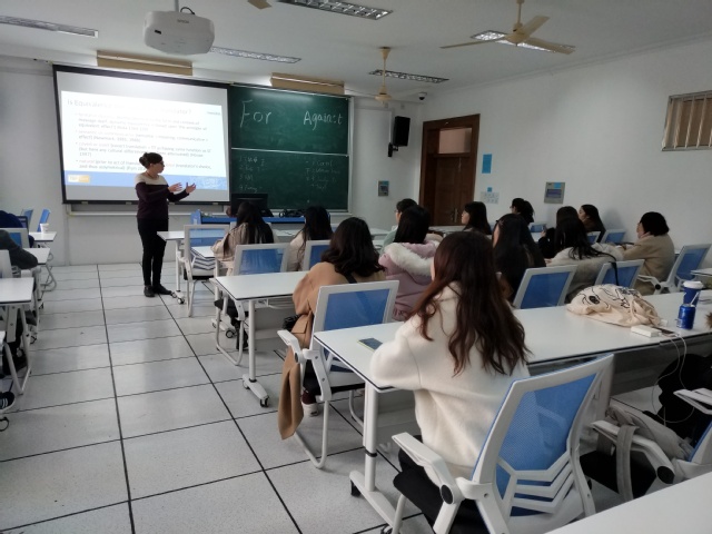 12月2日,Li Li教授到访外国语学院,并为学院大四本科生和研究生作了题为“如何在学术阅读与写作中发展思辨能力”的讲座。讲座旨在讨论学术英语相关话题以及个体如何发展批判性思维能力。Li Li教授以学术阅读和写作具体举例,为学生们深入分析了批判性思维能力的构成因素。Li Li教授担任多家国际应用语言学期刊和TESOL期刊审稿人、编辑或编委,并担任英国应用语言学会行政委员会委员和英国使馆文教处优秀硕士毕业论文评审委员。