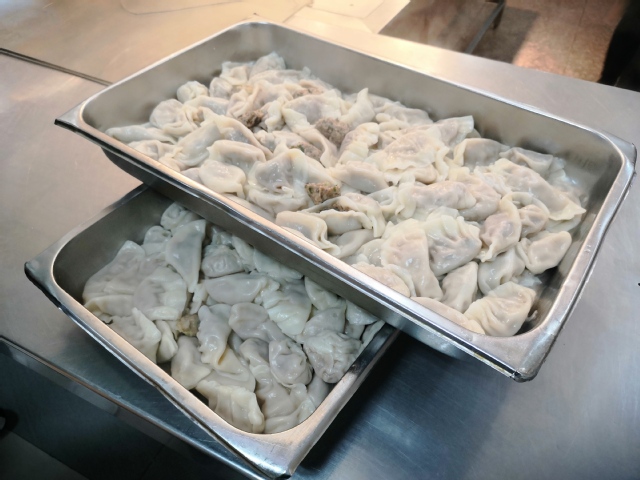 食堂师傅帮同学们煮好饺子。热气腾腾的饺子一上桌,同学们便迫不及待地拿起手中筷子,一边品尝着自己的“劳动成果”,一边话家常,场面热闹而温馨。