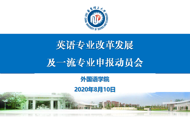 8月10日,为迎接2020年度一流专业申报,外国语学院召开一流专业申报线上动员会。学院党政领导班子成员、承担英语专业教学任务的全体教师、日语和德语专业的负责人和骨干教师参加会议。