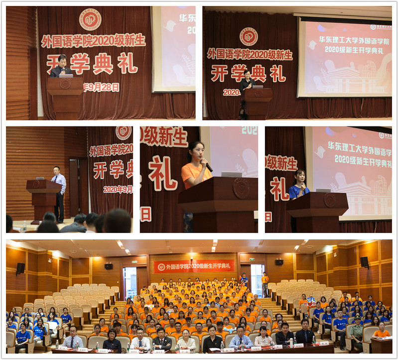 学院教师代表为2020级新生佩戴校徽。全体师生合唱华东理工大学校歌。在热烈的掌声和浓浓的温情中,外国语学院2020级新生开学典礼落下帷幕,崭新的生活华章正式开启。