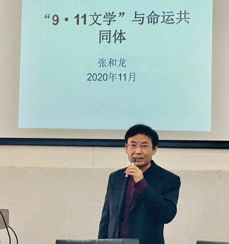 11月13日下午,应外国语学院邀请,上海外国语大学文学研究院副院长、外国文学学会英国文学分会副会长、上海市外国文学学会秘书长、上海翻译家协会理事张和龙教授在三教三阶上作了题为“‘9.11文学’与命运共同体”的学术讲座。讲座由外国文学研究所所长陈丽教授主持。