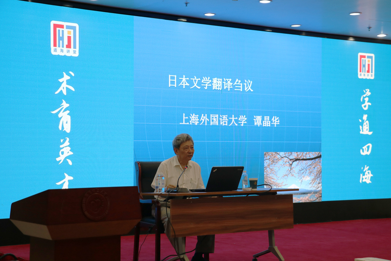 5月28日下午,由校办、教务处、学工部主办,外语学院承办的第71期“通海讲堂”在奉贤校区通海厅开讲。上海外国语大学原常务副校长、中国日本文学研究会会长、中国中日比较文学研究会副会长谭晶华教授应邀作了题为“日本文学翻译刍议”的专题讲座。外语学院院长赵宏、副院长张正军及我校80余名师生参加了讲座。讲座由张正军主持。