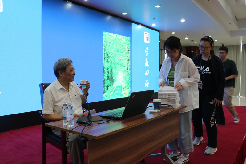 讲座结束后,谭晶华向学生赠送了10册自己主编的教材,并与日语系教师进行了座谈,介绍了学界开元网页版,回答了教师关心的问题。