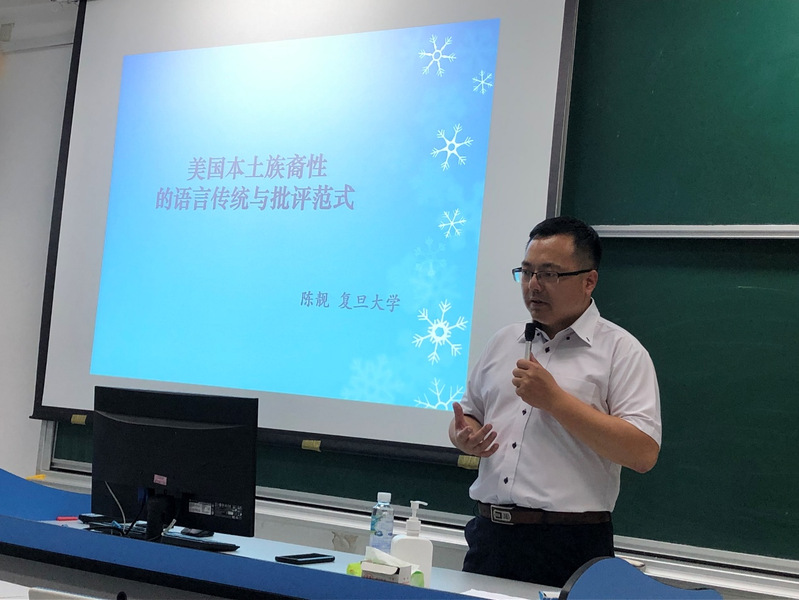 6月18日,应我校外国语学院邀请,复旦大学外文学院英文系主任陈靓教授为我校师生作了题为“美国本土族裔性的语言传统与批评范式”的学术报告。报告由我校外国文学研究所所长陈丽教授主持。