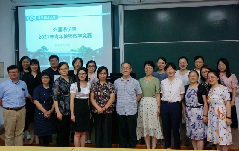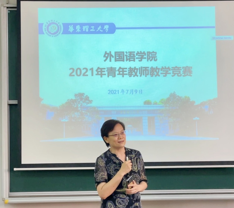 7月9日下午,外语学院2021年青年教师教学竞赛在徐汇校区三教201举行。校督导组(人文社科组)组长、外语学院原副院长颜静兰教授,上海外国语大学法国语言文学教授、博士生导师钱培鑫教授,上海外国语大学日本文化经济学院曾婧副教授,上海应用技术大学德语系主任徐林峰副教授,外国语学院优秀青年教师楼燕斐担任本次比赛的评委。外语学院党委书记王喆,院长、党委副书记赵宏,副院长韦晓保和学院部分教师观摩了比赛。比赛由英语系方朝和日语系张凤云两位老师主持。