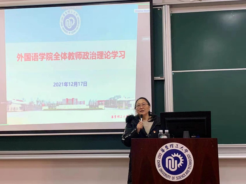 12月17日,外国语学院党委通过线上线下同步进行的形式组织全体教师和学生党员开展政治理论学习,集中学习党的十九届六中全会精神。华东理工大学学习贯彻党的十九届六中全会精神宣讲团成员、人文社会科学处副处长唐有财教授应邀作了题为“党的十九届六中全会精神解读”的专题讲座。讲座由外国语学院党委书记王喆主持。