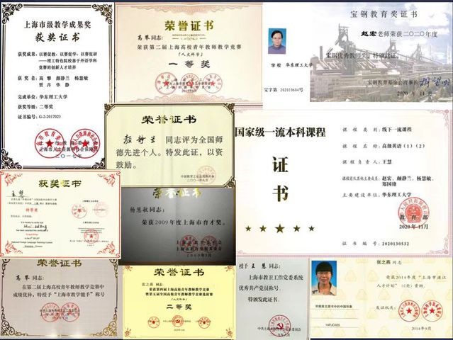 四十年来,在学校和学院的领导下,英语专业的教师们潜心育人,相继荣获了“全国师德先进个人”“上海市教学名师”“全国宝钢优秀教师”“上海市育才奖”“上海市教学能手”和“上海市浦江人才”等荣誉称号,在教学竞赛中屡获佳绩,斩获过“全国外教社杯教学大赛冠军”“上海市外教社杯教学大赛冠军”“上海市青教赛一等奖”等诸多奖项。另外,专业建有国家级一流课程1门、上海市精品课程3门、上海市重点课程10门、虚拟仿真实验1项,校级重点和精品课程30余门。