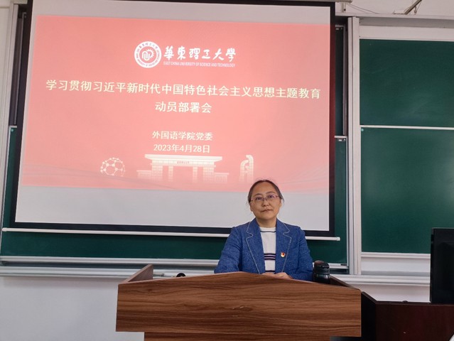会上,王喆就外国语学院党委深入开展学习贯彻习近平新时代中国特色社会主义思想主题教育作动员部署。她要求学院领导班子成员和全体党员要充分领会开展主题教育的重大意义、牢牢把握主题教育总要求和目标任务,把思想和行动统一到党中央决策部署上来;要强化组织领导,压实主体责任,确保外国语学院高标准高质量落实学习贯彻习近平新时代中国特色社会主义思想主题教育的各项重点任务。