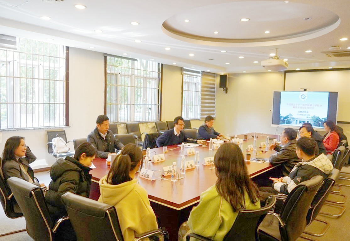 我校研究生院副院长、学位办主任刘涛,外国语学院院长赵宏,副院长吴建伟、韦晓保,MTI教育中心主任郑国锋和外国语言文学一级学科硕士学位授权点和翻译专业硕士学位(MTI)授权点的骨干教师及学生代表等20余人参加了会议。