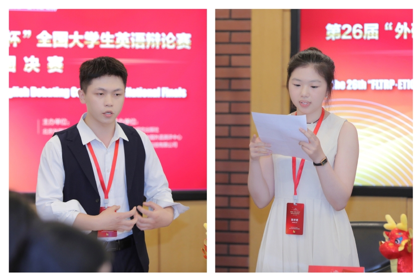 值得一提的是,我校参赛的2位选手来自不同学院,但在比赛中展现出良好的团队合作精神和跨学科思维能力。郭妤婕同学首次代表我校参赛,取得优异成绩,蒋涛同学更是凭借出色表现,荣获华东赛区“最佳辩手”称号,充分展现了我校的外语教学和人才培养的有效成果。