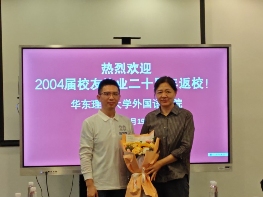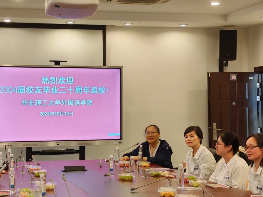 10月19日,外国语学院举行2004届校友毕业20周年返校活动。校工会副主席、妇委会常务副主任(原2004届辅导员)张攀,学院党委书记王喆,院长(原2004届班导师)赵宏,学院党委副书记樊俊,原2004届班导师杨慧敏、贾卉,学院校友工作联络员万灿红,2004届校友代表及家属等参加活动。