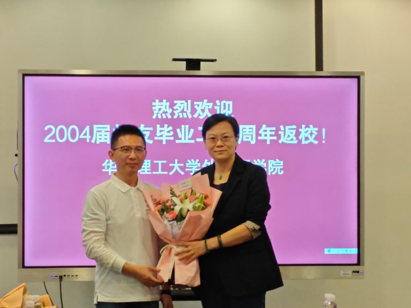 校友们依次发言介绍了自己的工作生活情况,表示会持续致力于统筹协调校友资源,为学院发展贡献力量。为了表达对老师和学校培养的感谢,校友代表依次向老师献花。