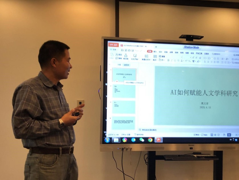 高义吉副教授围绕“AI如何赋能人文学科研究”,从理论溯源到实践挑战展开分析。他提到“AI幻觉”概念,警示学界需警惕大语言模型在文献综述中的局限性,呼吁以批判性思维实现“人机共生”,避免沦为技术附庸。